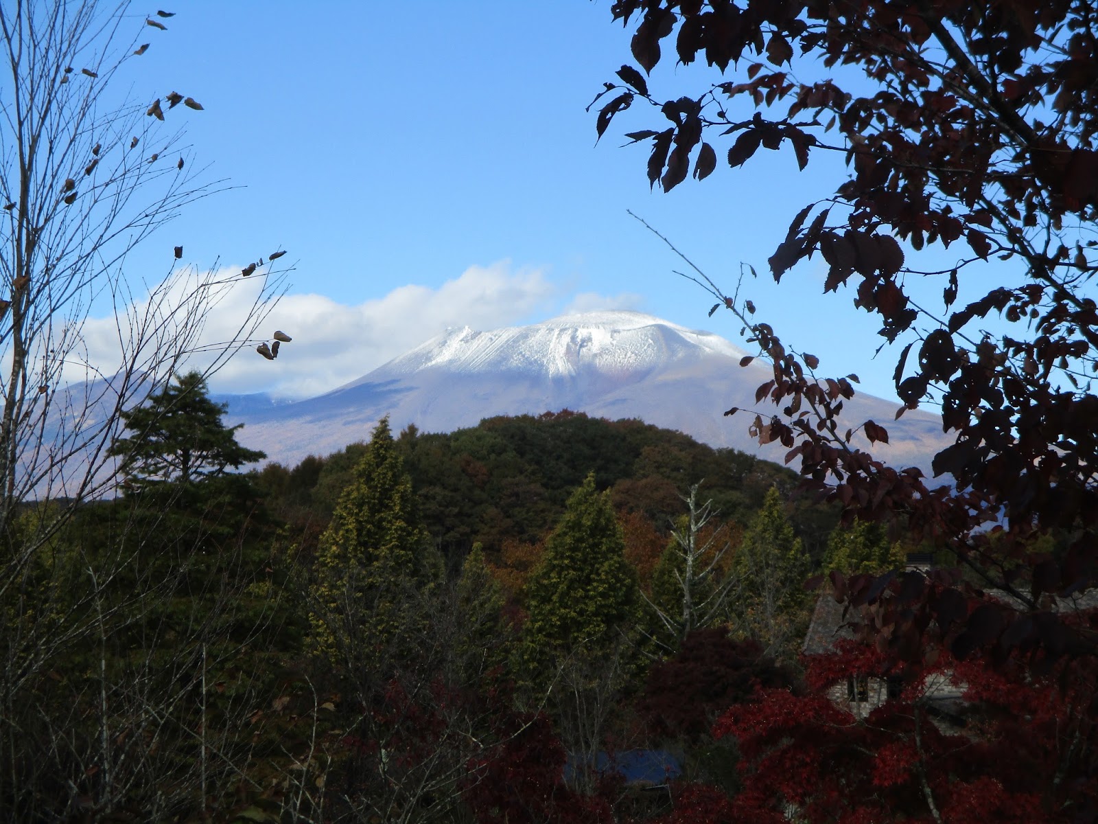 本日、ガーデンから見える浅間山に雪が積もっています♪